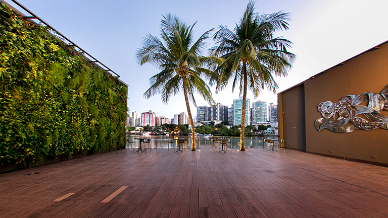 Outro grande destaque é o Jardim Vertical de 9 metros de altura que compreende todo o Deck até o Canal, sem falar na maior Obra de Arte da Renomada Artista Ana Paula Castro, desenvolvida exclusivamente para o Le Buffet Lounge é sem dúvida uma das maiores atrações do Espaço.